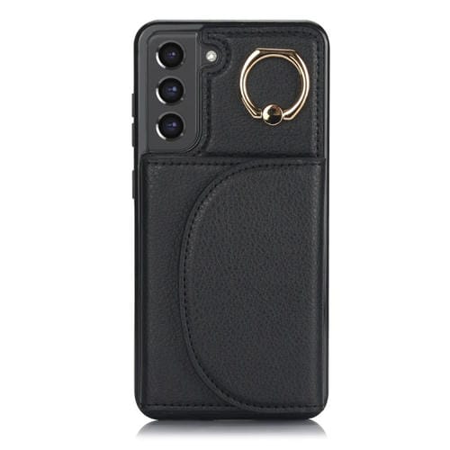 Estuche para Teléfono Samsung Galaxy S21 FE 5G Ym007 con Soporte para Anillo y Tarjeta (Negro)