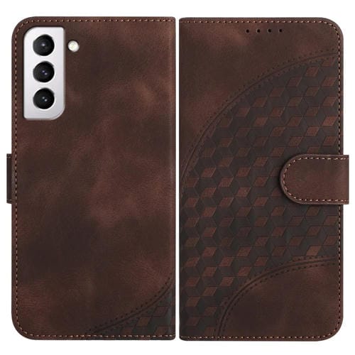Funda para Samsung Galaxy S21 FE 5G Yx0060 Cuero con Relieve y Cabeza de Elefante con Cordón (Café)