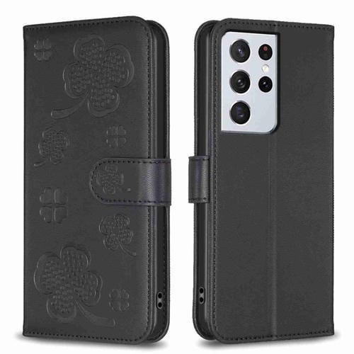 Funda de Cuero Samsung Galaxy S21 Ultra 5G con Relieve de Cuatro Hojas (Negro)
