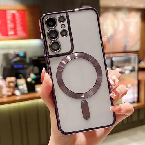 Funda para Teléfono Samsung Galaxy S21 Ultra 5G TPU Galvanoplastia Magsafe (Púrpura)