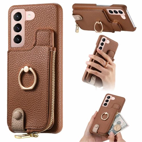 Funda para Samsung Galaxy S21 Ultra 5G Litchi Leather Oil Edge Ring Zipper Wallet Back (Marrón)
