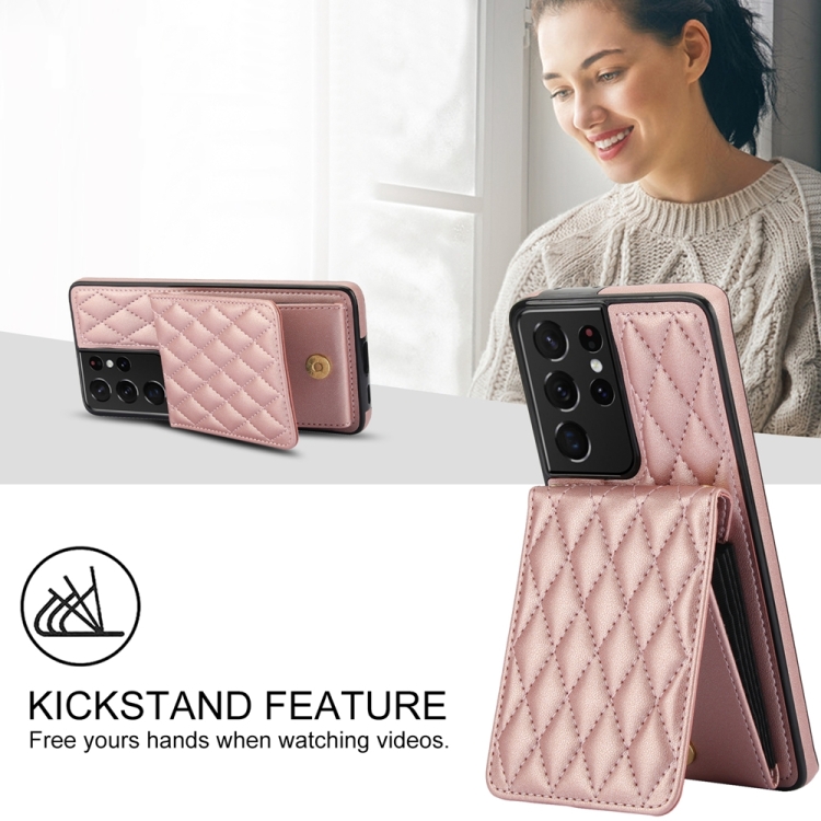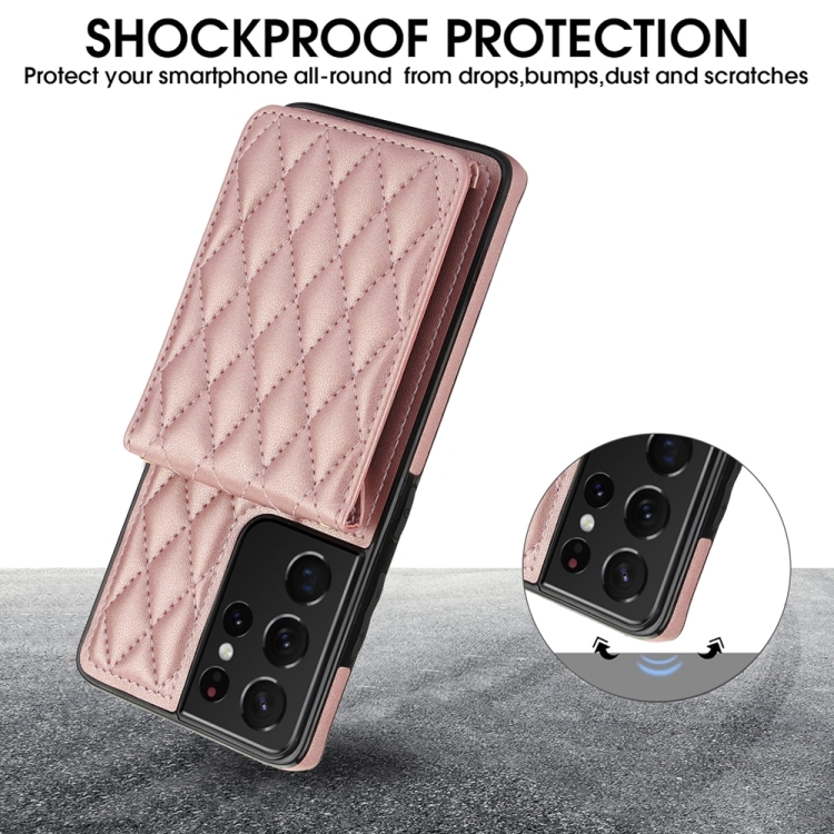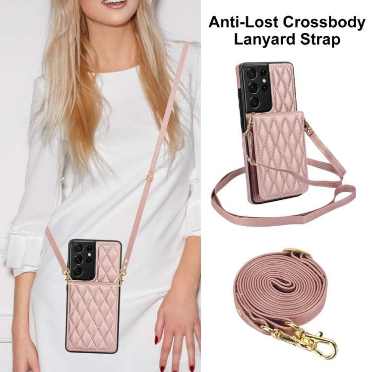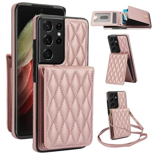 Estuche Cruzado Samsung Galaxy S21 Ultra 5G Ym015 con Tarjeta Rómbica RFID (Oro Rosa)