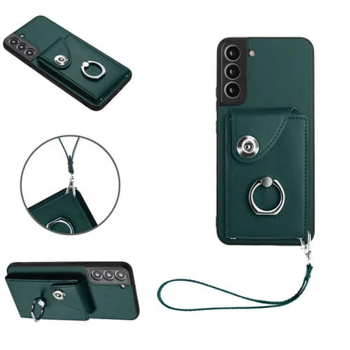 Funda para Teléfono Samsung Galaxy S22 + 5G Bolsa para Tarjeta Soporte para Anillo de PU con Cordón (Verde)