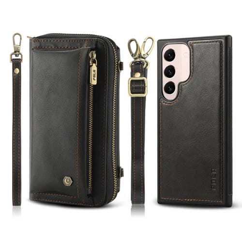 Funda de Cuero Crossbody para Samsung Galaxy S22 + 5G con Billetera y Cremallera (Negro)