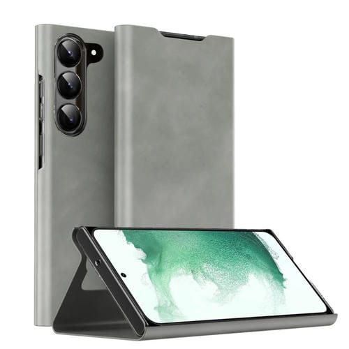 Funda Magnética de Cuero para Samsung Galaxy S22 + 5G con Textura de Napa y Soporte (Gris)