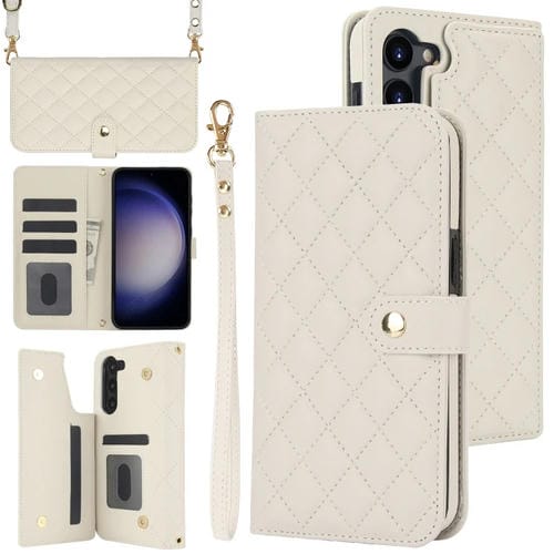 Estuche para Teléfono Samsung Galaxy S23 5G Crossbody Cuero Rómbico Multifunción (Blanco)