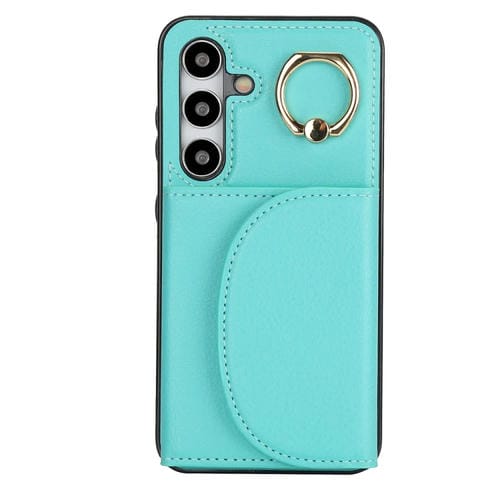 Funda para teléfono Samsung Galaxy S24 5G Ym007 con soporte para anillo y tarjeta con sensación de piel (Verde)