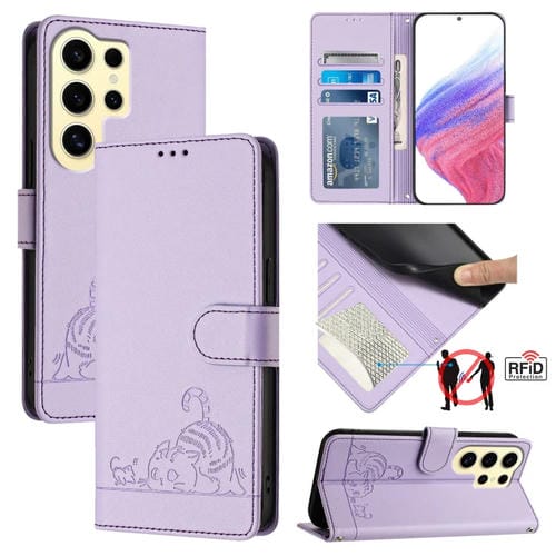 Estuche para Teléfono Samsung Galaxy S24 Ultra 5G Cuero Rfid Patrón En Relieve y Cordón (Púrpura)