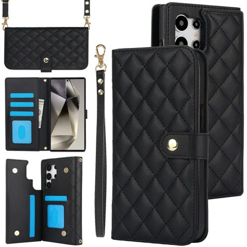 Estuche para Teléfono Samsung Galaxy S24 Ultra 5G Crossbody Cuero Rómbico Multifunción (Negro)