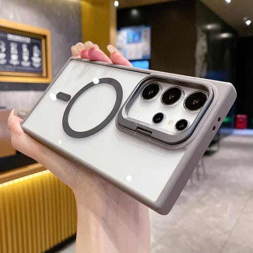 Estuche para Teléfono Samsung Galaxy S24 Ultra 5G Magsafe con Soporte y Marco de Lente de Metal (Gris)