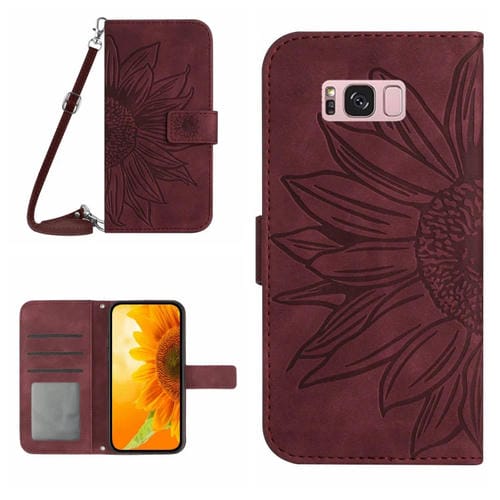 Funda Flip de Cuero Samsung Galaxy S8 Skin Feel Sun Flower Pattern con Cordón (Rojo Vino)