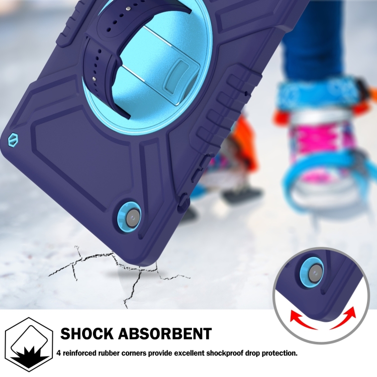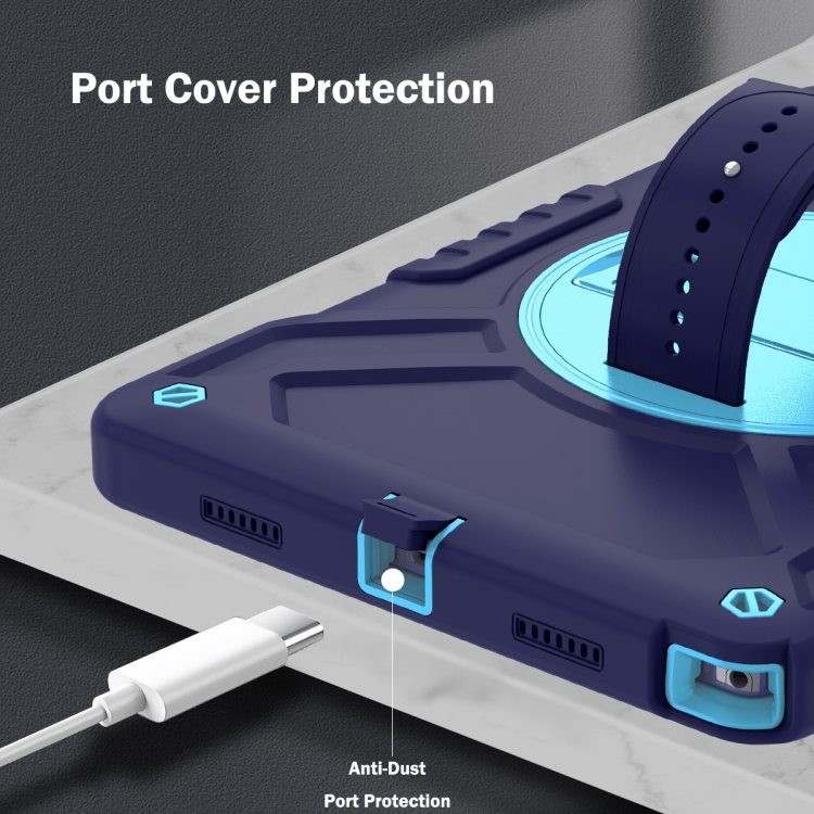 Funda híbrida para Samsung Galaxy Tab A8 X200 con rotación PC silicona con correa (Azul Marino)