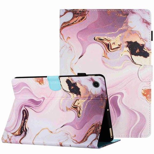 Funda para Tablet Samsung Galaxy Tab A9 Cuero Inteligente Costura Patrón Mármol (Rosa Dorado)