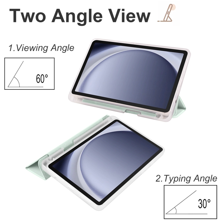 Funda para Tablet Samsung Galaxy Tab A9 X110 Cuero TPU Transparente Panal 3 Pliegues Ranura Bolígrafo (Verde Claro)