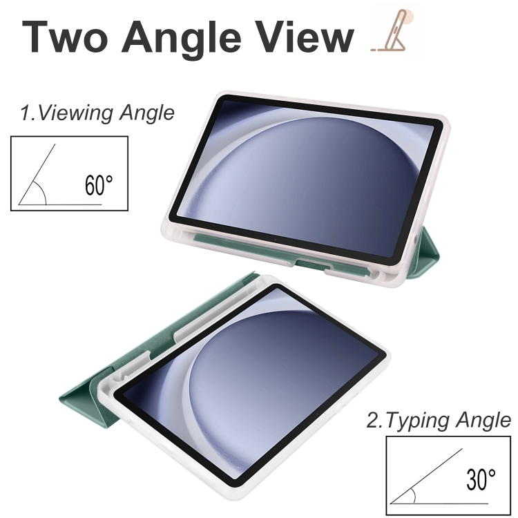 Funda para Tablet Samsung Galaxy Tab A9 X110 Cuero TPU Transparente Panal 3 Pliegues Ranura Bolígrafo (Verde Oscuro)