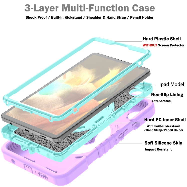 Funda para Tablet Samsung Galaxy Tab A9 X110 X Silicona Híbrida Rotación con Correa (Cian Púrpura)