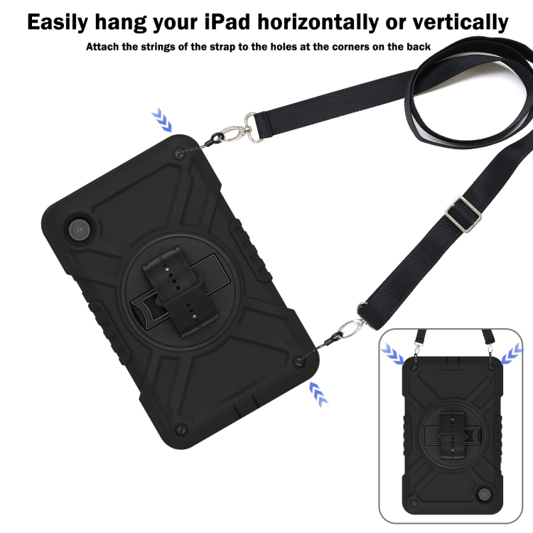 Funda para Tablet Samsung Galaxy Tab A9 X110 X Silicona Híbrida Rotación con Correa (Negro)