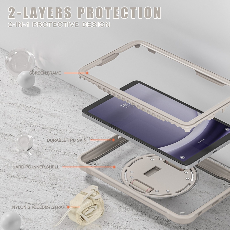 Estuche híbrido para Tablet Samsung Galaxy Tab A9 X110 / X115 resistente con asa y correa (Caqui)