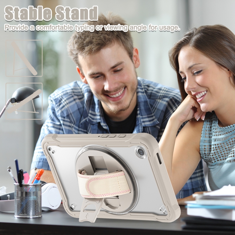 3. Correa de hombro ajustable: el agarre de hombro ajustable se puede inclinar y liberar las manos por completo.Esta función es perfecta para viajes, pedidos en restaurantes, introducción de productos para el hogar, operaciones al aire libre para ingenieros, maestros, etc. Además, la correa le permite colgar su tableta detrás del asiento del automóvil para entretener a los niños.