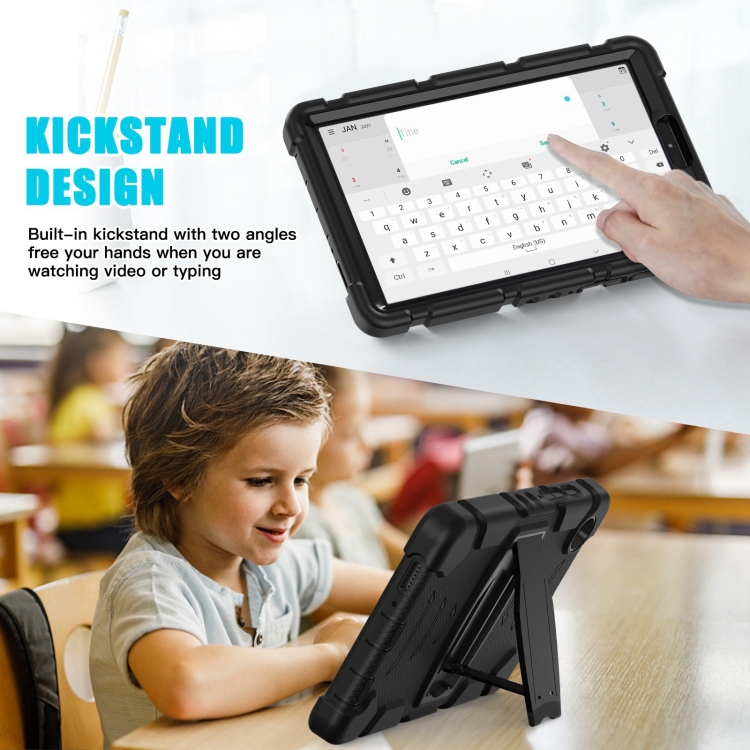 Funda híbrida para Samsung Galaxy Tab A9+ X210 con soporte de silicona y PC (Negro)
