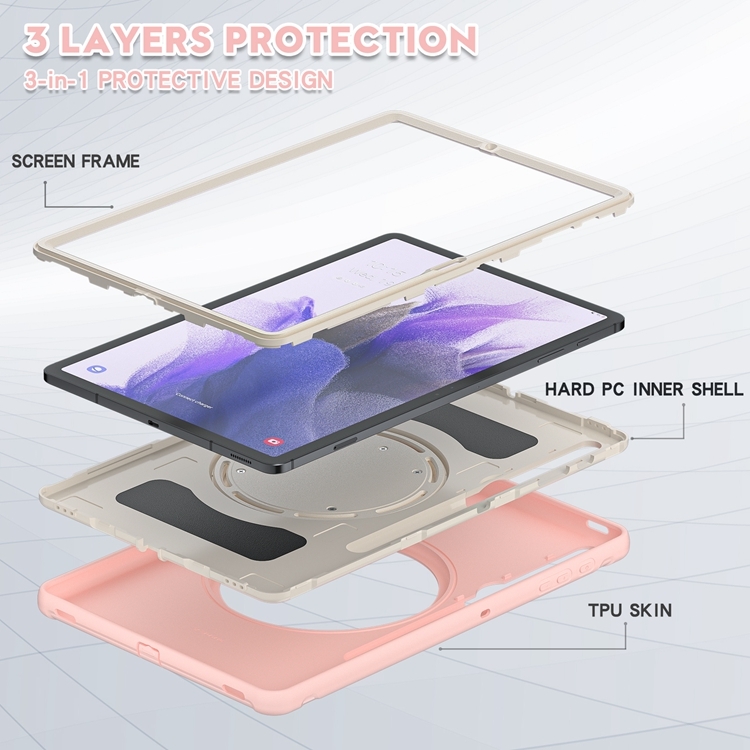 Funda Protectora Samsung Galaxy Tab S8 Plus / S7 FE 12.4 Pulgadas TPU + PC con Soporte y Ranura Lápiz (Flores de Cerezo Rosa)