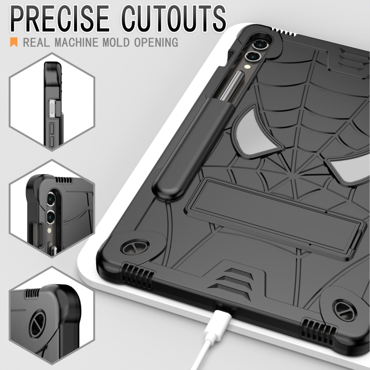 Funda para Tablet Samsung Galaxy Tab S9 FE + S9 Híbrida Silicona Spider con Soporte Plegable (Negro)