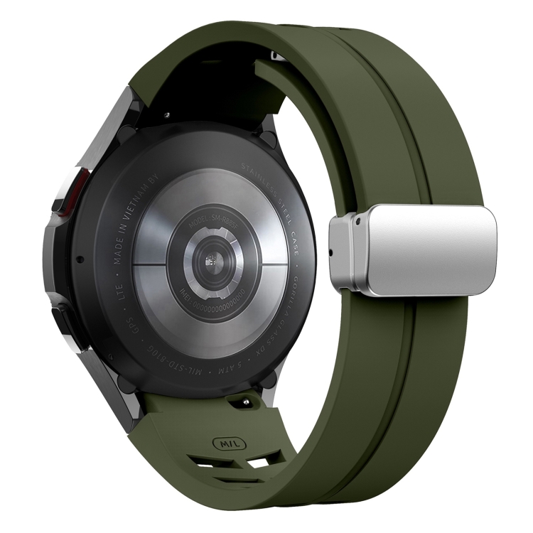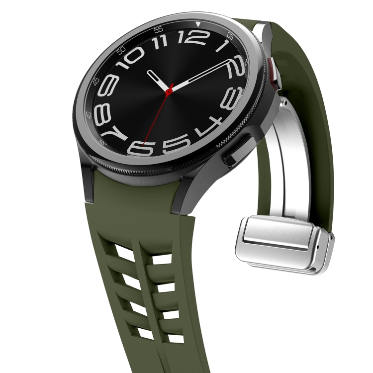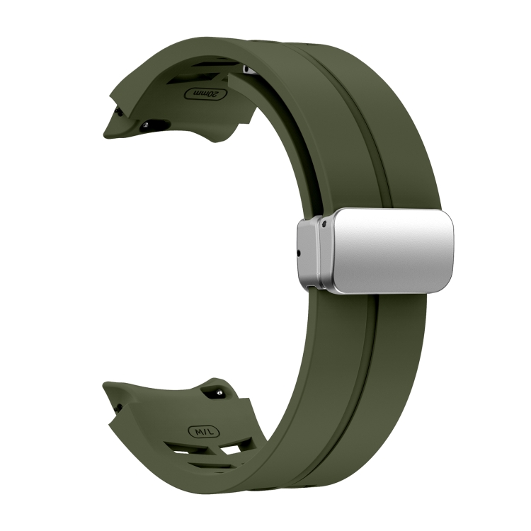 Correa de Reloj silicona para Samsung Galaxy Watch 4 40/44mm Richard con hebilla plateada plegable magnética (Verde Militar)