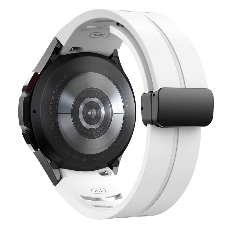 Correa de Silicona para Samsung Galaxy Watch 4 Classic 42/46mm Richard con Hebilla Negra Plegable Magnética (Blanco)