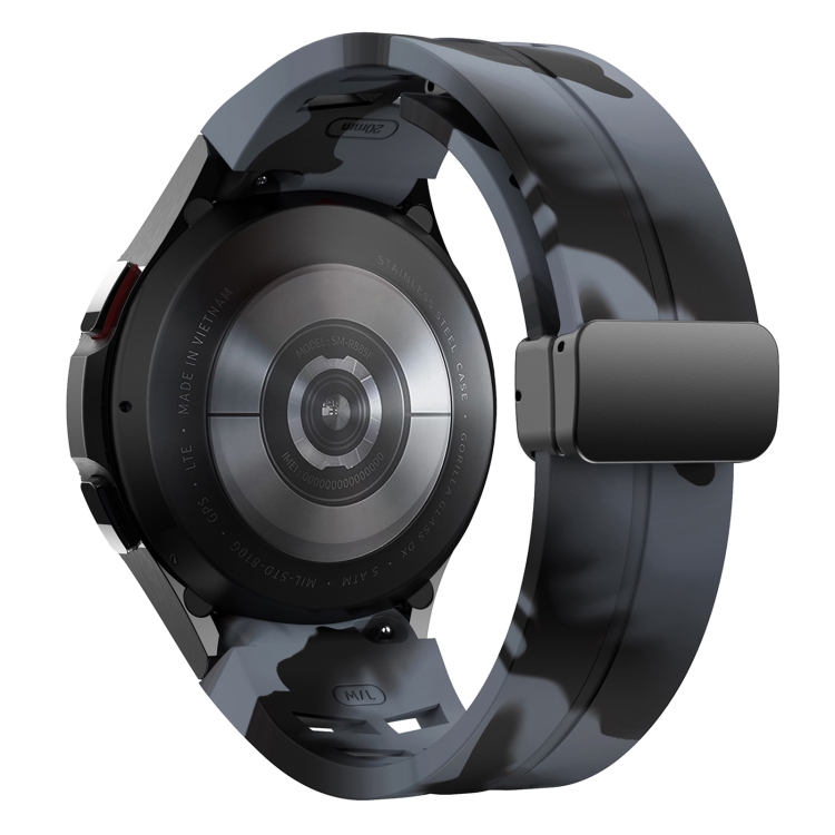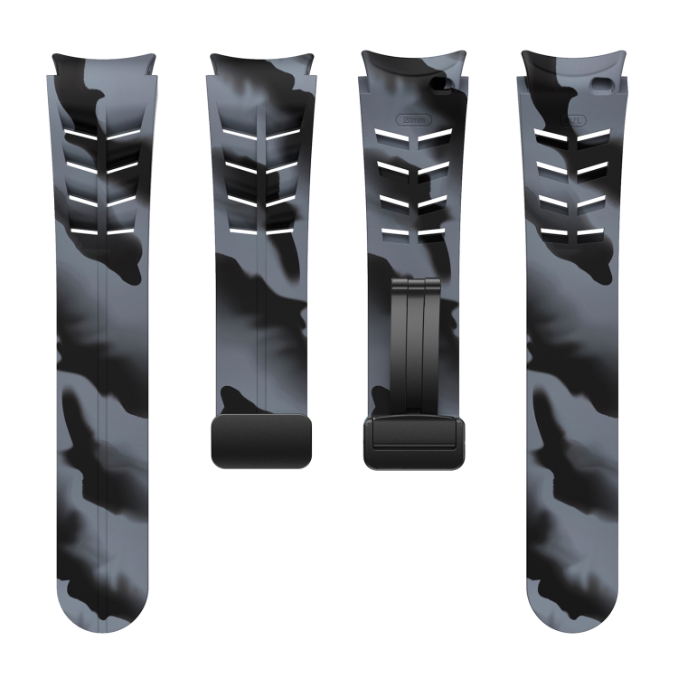 Correa de Silicona para Samsung Galaxy Watch 4 Classic 42/46mm Richard con Hebilla Plegable Magnética (Camuflaje Gris Negro)