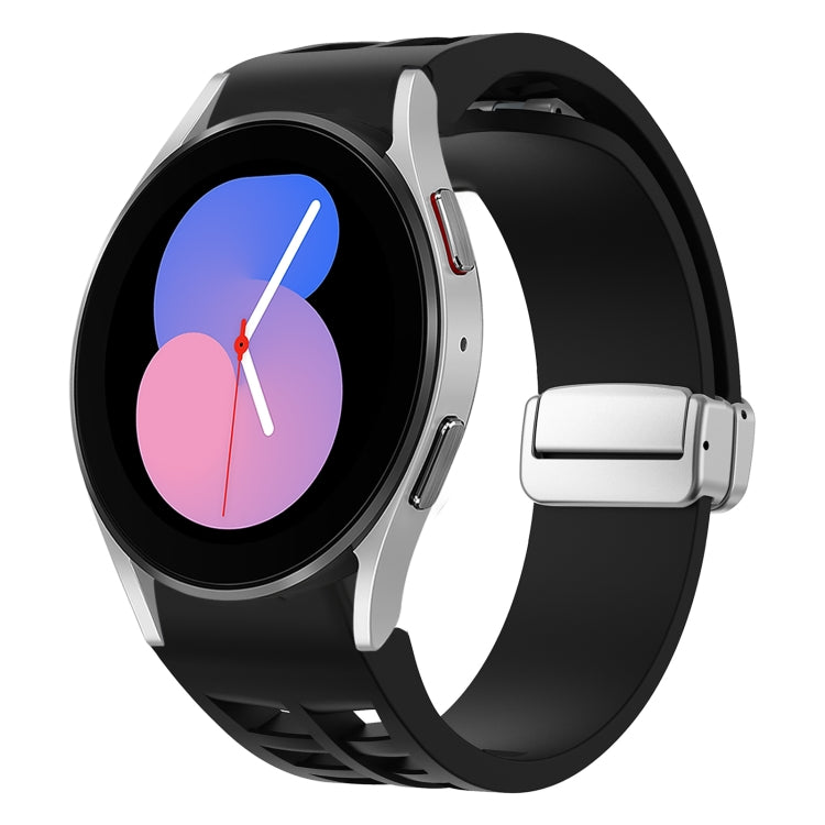 Correa de Reloj Silicona para Samsung Galaxy Watch 5 40/44mm Richard con Hebilla Plateada Plegable Magnética (Negro)