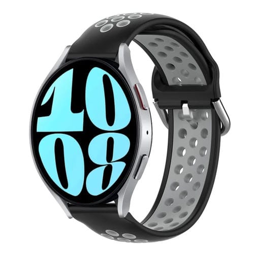 Banda de Reloj de Silicona Deportiva para Samsung Galaxy Watch 6 44mm 20mm (Negro + Gris)