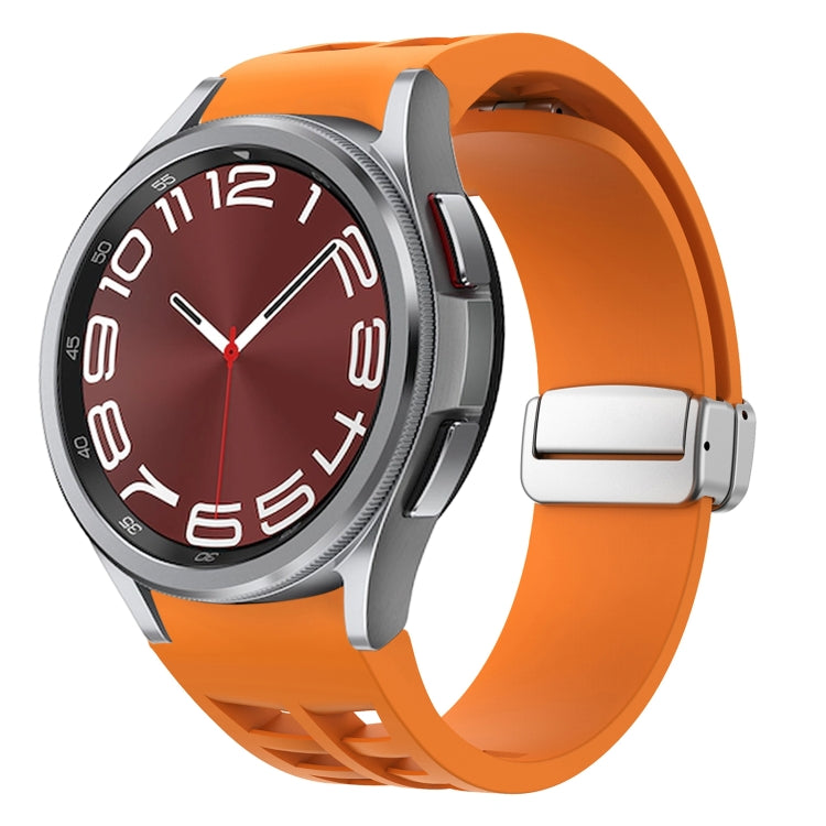 Correa de Silicona para Samsung Galaxy Watch 6 Classic 43/47mm Richard con Hebilla Plateada Plegable Magnética (Naranja)