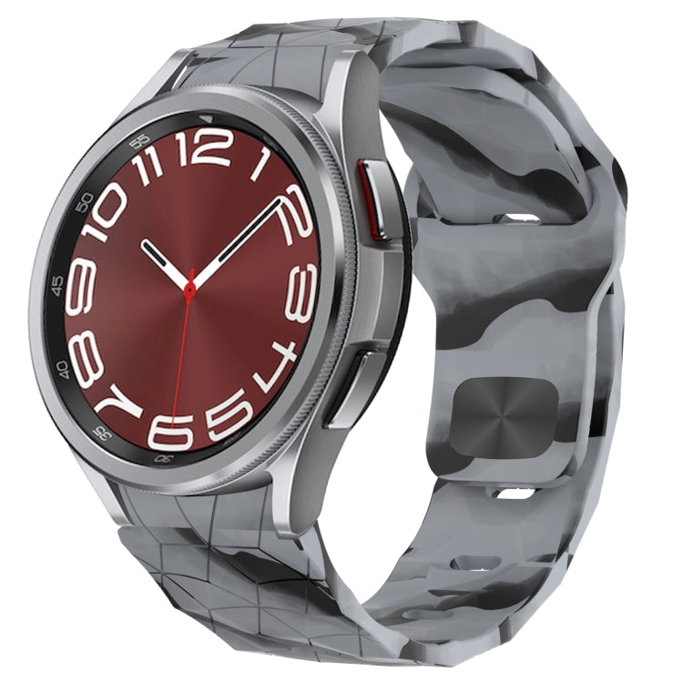 Correa de Silicona para Samsung Galaxy Watch 6 Classic 43mm con Hebilla Inversa y Textura de Fútbol (Gris Camuflaje)