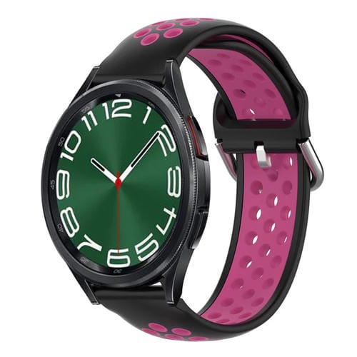 Banda de Reloj de Silicona Deportiva para Samsung Galaxy Watch 6 Classic 43mm 20mm (Negro + Rojo Rosa)