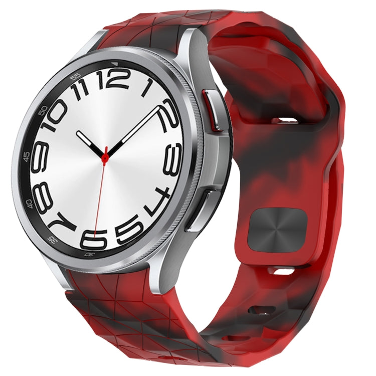 Correa de Silicona para Samsung Galaxy Watch 6 Classic 47mm con Hebilla Inversa y Textura de Fútbol (Rojo Camuflaje)