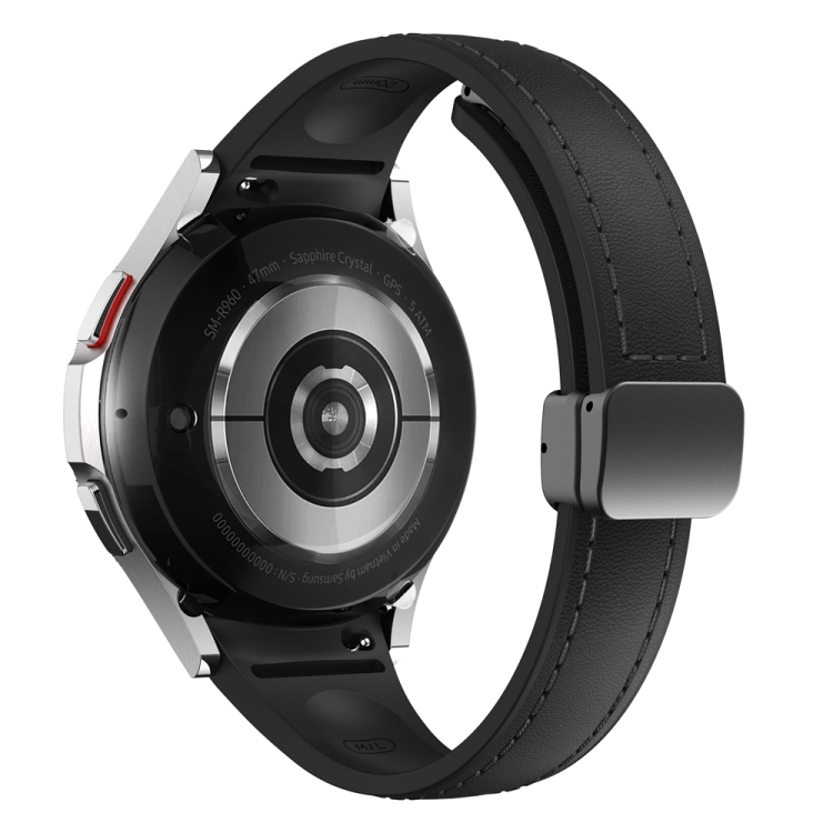 Correa de Silicona y Cuero para Samsung Galaxy Watch 6 con Hebilla Magnética Delgada (Negro)