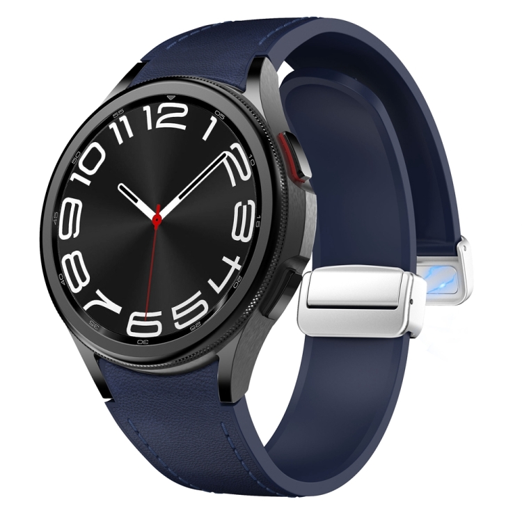 Correa de Silicona y Cuero para Samsung Galaxy Watch 6 con Hebilla Magnética (Azul Medianoche)