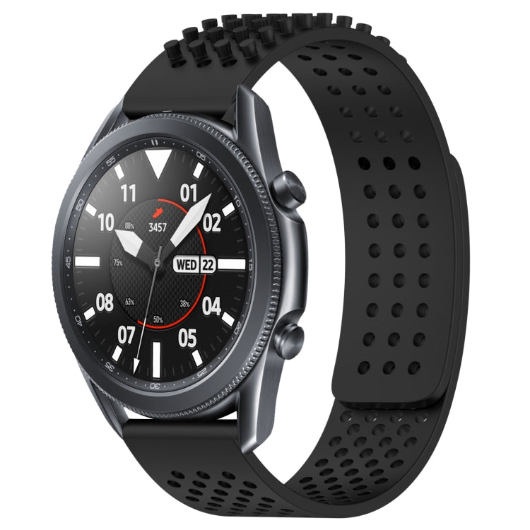 Correa de Reloj de Silicona para Samsung Galaxy Watch3 45mm 22mm con Orificios y Puntos 3D (Negro)