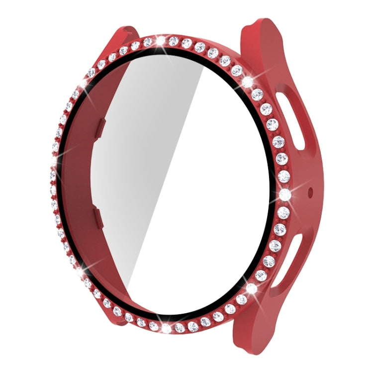 For Samsung Galaxy Watch5 44mm Single Row Diamond PC+Tempered Glass Watch Case(Red)