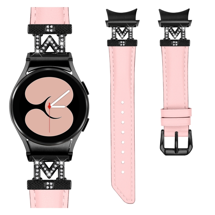 Correa para Samsung Galaxy Watch6/6 Classic M Cuero de Sarga En Forma de D (Negro Rosa)