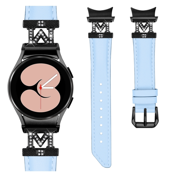 Correa de Reloj para Samsung Galaxy Watch6/6 Classic M Cuero Sarga Forma de D (Negro Azul)