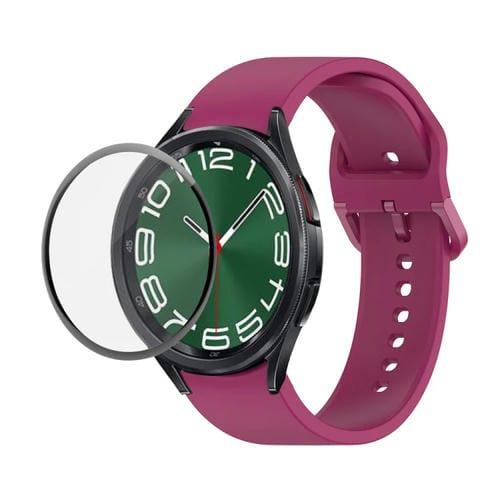 Correa Ajustable de Silicona para Samsung Galaxy Watch6 Classic 43mm Junsunmay + Kit Protector Pmma (Rojo Vino)