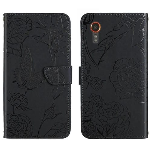Funda de Cuero para Samsung Galaxy Xcover 7 5G Skin Feel Butterfly con Tapa en Relieve (Negro)