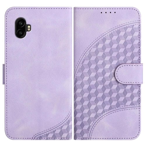 Funda de Cuero Samsung Galaxy Xcover6 Pro Yx0060 con Relieve Cabeza de Elefante y Cordón (Púrpura Claro)