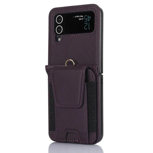 Estuche plegable Samsung Galaxy Z Flip3 con ranuras para tarjetas y cordón largo (Púrpura Oscuro)