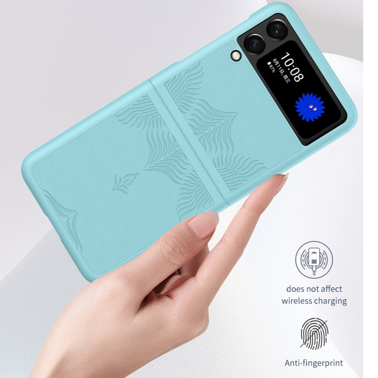 Para Samsung Galaxy Z Flip4 5G Funda protectora para teléfono con textura de cuero en relieve (rosa)