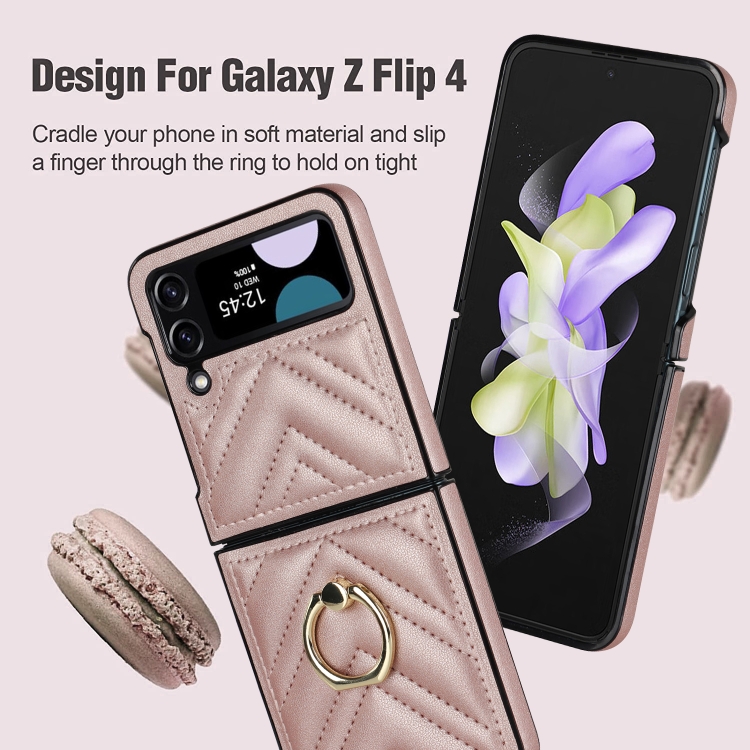 Funda Protectora Samsung Galaxy Z Flip4 Teléfono Plegable Forma de V con Anillo Giratorio (Oro Rosa)