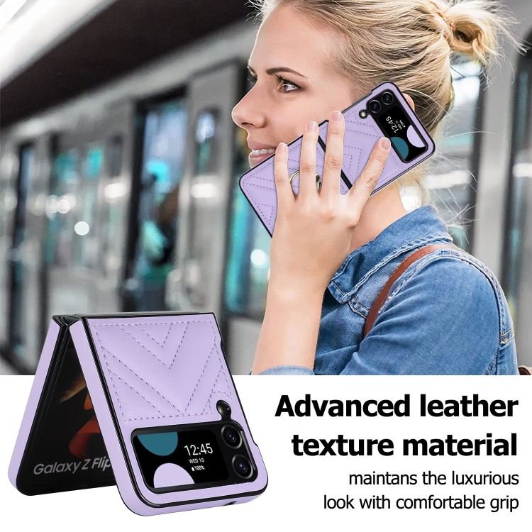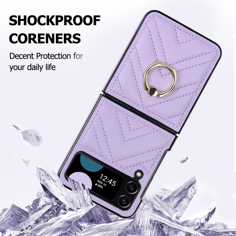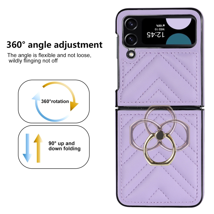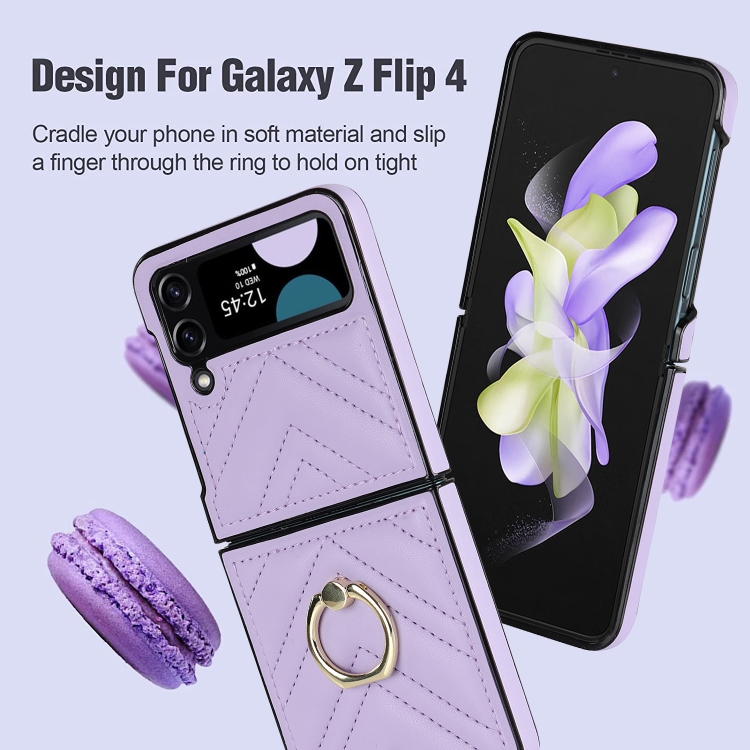 Funda Protectora Samsung Galaxy Z Flip4 Teléfono Plegable Forma de V Anillo Giratorio (Púrpura)