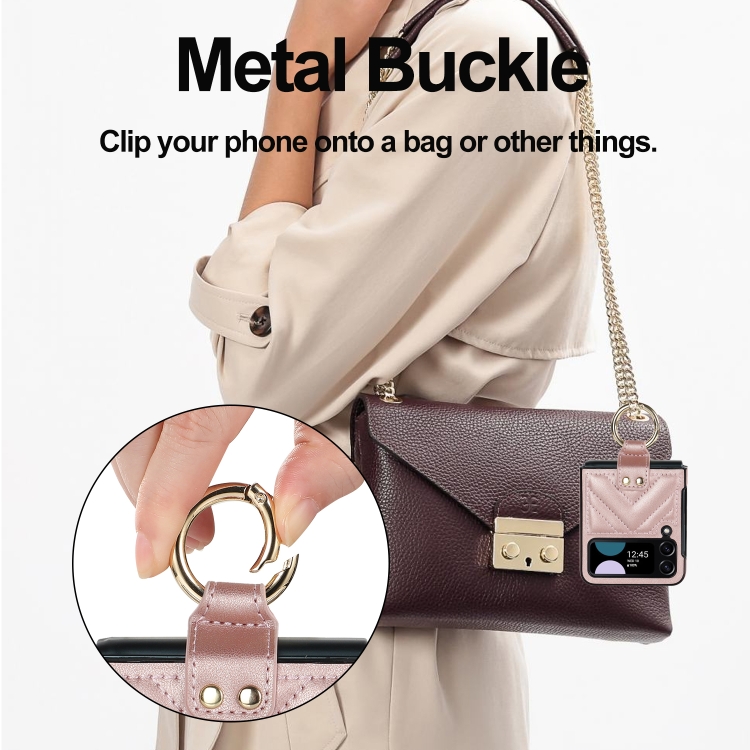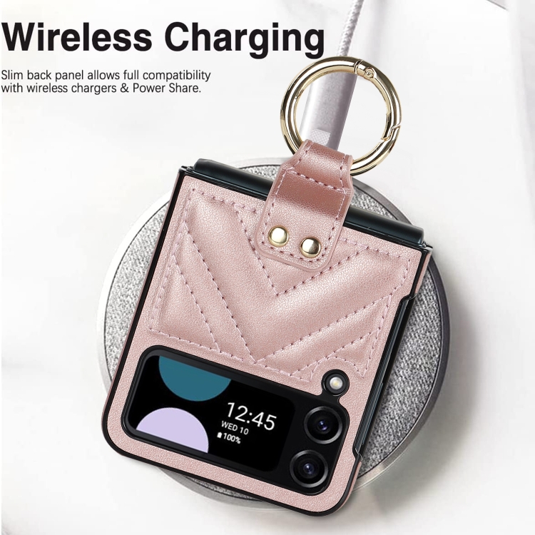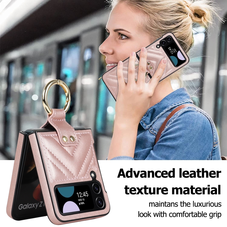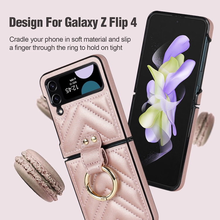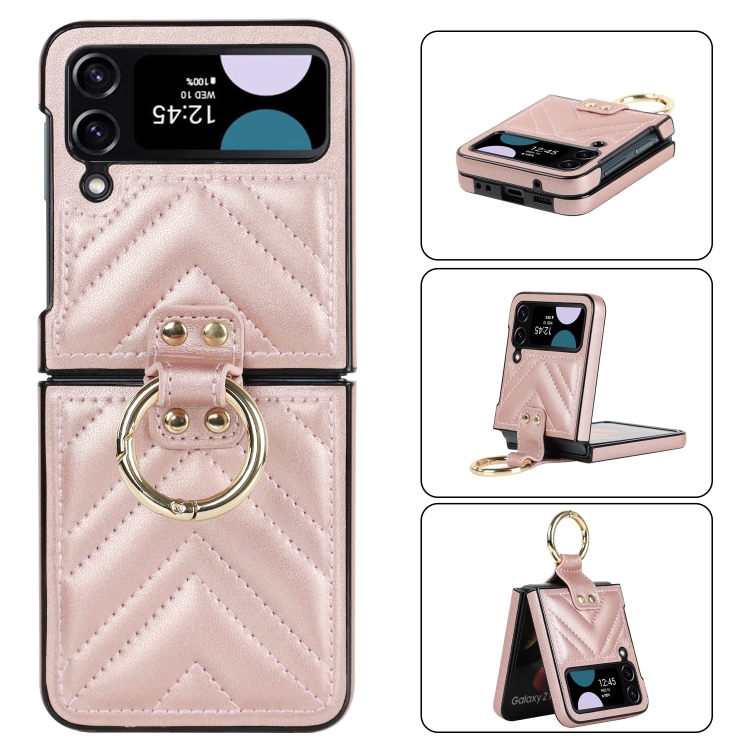 Funda Protectora Samsung Galaxy Z Flip4 Teléfono Plegable Forma de V con Anillo (Oro Rosa)