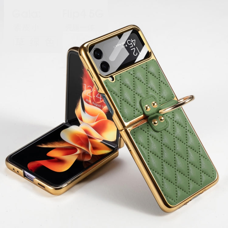 Para Samsung Galaxy Z Flip4 GKK Recubrimiento integrado + Funda de cuero para teléfono con anillo (Matcha Green)